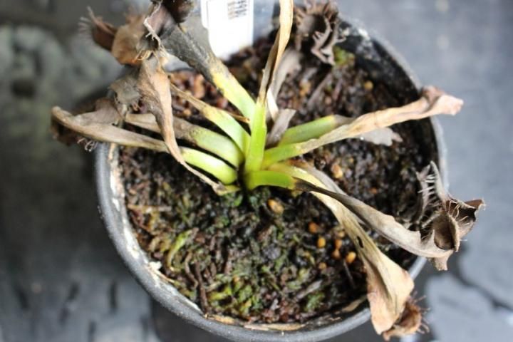 冬の寒さには比較的強く、冬の間は地上部を枯らして、葉が重なった球根の様な地下部で冬越しし、春温かく(5月頃?)なってきたら葉が展開しています。